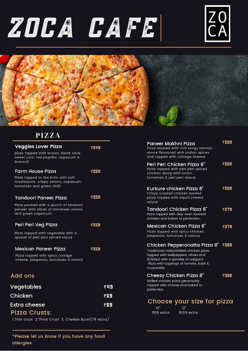 Welcome to Zoca Panipat Cafe, a delightful culinary gem nestled in Model Town, Panipat. This charming cafe offers a comprehensive menu that caters to diverse tastes, showcasing an array of mouth-watering options.
